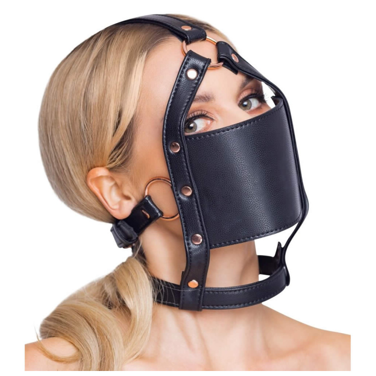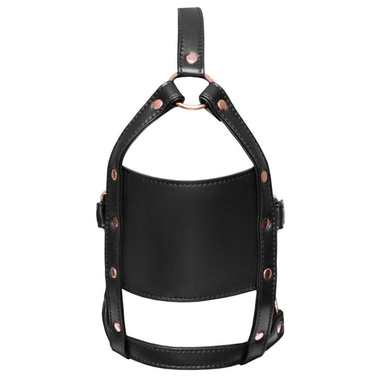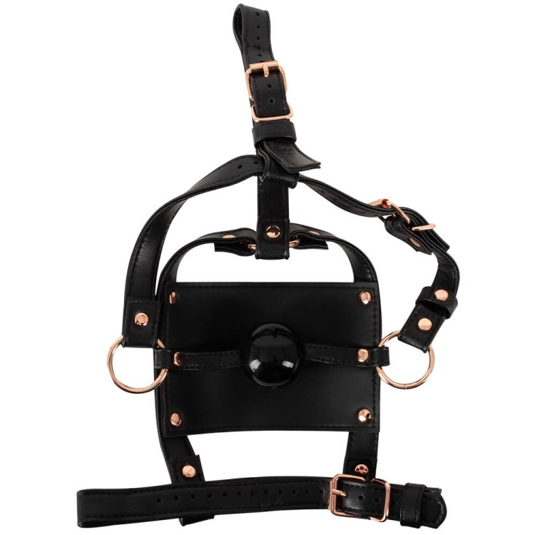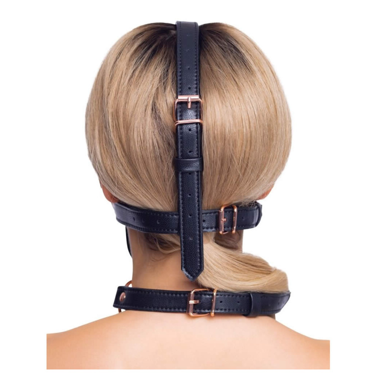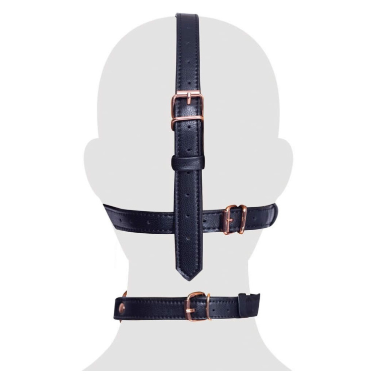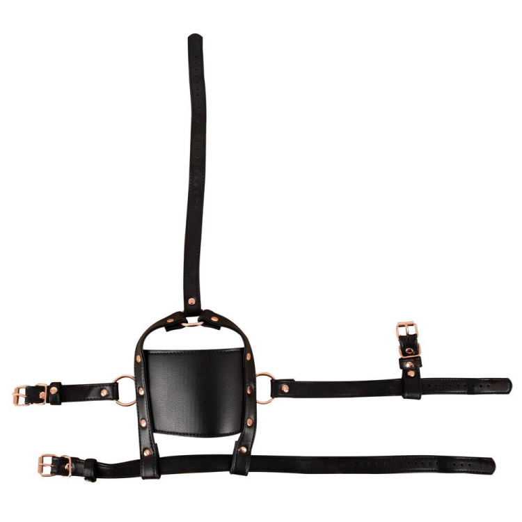 Med sit forførende læderlook og smukke rosaguld-metaldetaljer, bringer denne hovedsele et ekstra touch af luksus til dit BDSM-udstyr. Den faste pasform sikres via justerbare spænder, så den kan tilpasses alle hovedstørrelser. Dette skaber en behagelig og stram fornemmelse, der styrker den sensoriske oplevelse af underkastelse.
