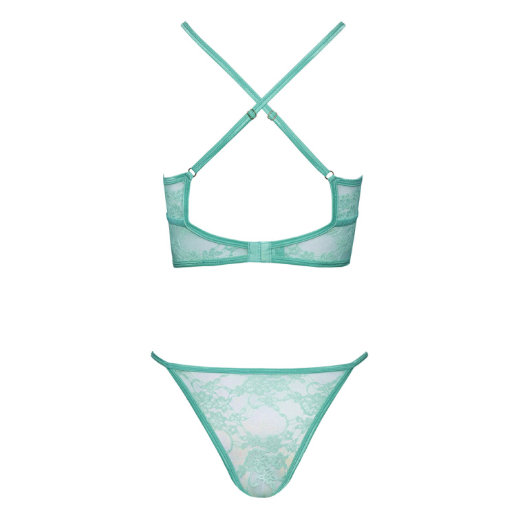 Fantasy Lace BH og G-Streng Sæt i Mint Grøn – Søde Blonder i en Frisk og Indbydende Farve