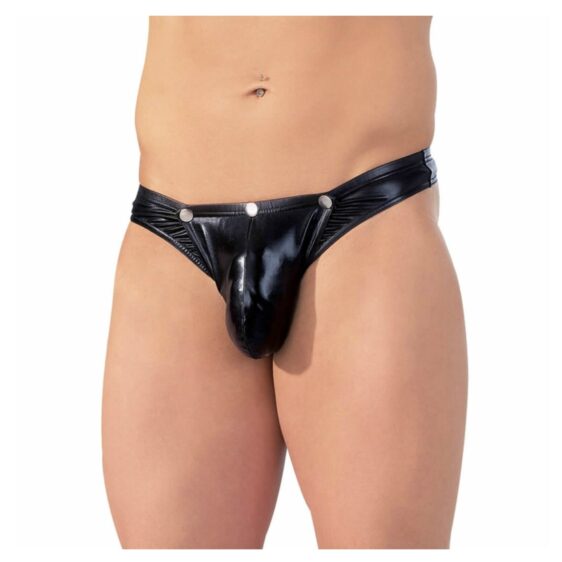 Herre g-streng striptease – og måske giver du også et ekstranummer? Disse g-strenge er perfekte til en striptease. De er fremstillet i et elastisk og skinnende materiale og har trykknapper på fronten.