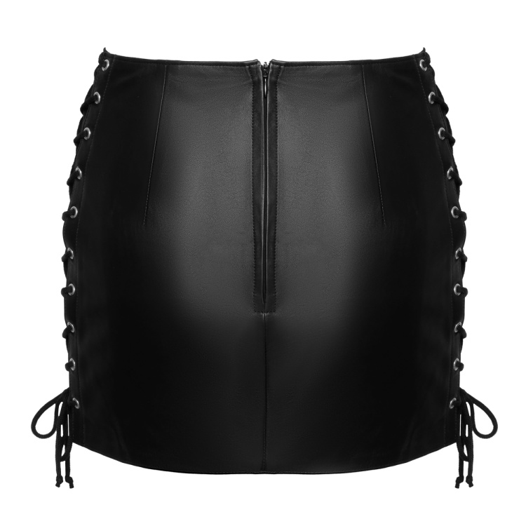 Selvom snøringerne tilføjer kant til designet, er der elastiske paneler under dem, så nederdelen stadig er behagelig at have på og giver bevægelsesfrihed. Lynlåsen bagpå gør den nem at tage af og på, uden at du skal justere snørerne hver gang.