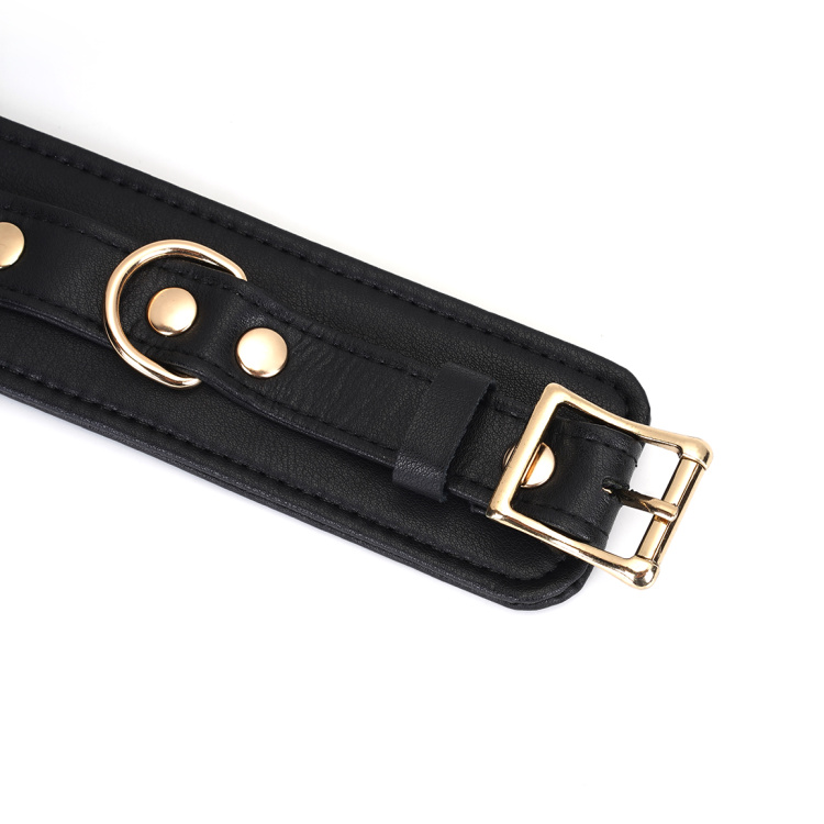 Dark Secret Ankelmanchetter med Guld fra japanske Liebe Seele er designet til dig, der ønsker luksus, komfort og stil i dit bondageleg. De er fremstillet af blødt sort koskindslæder og dekoreret med guldfarvet hardware, hvilket giver et sofistikeret og eksklusivt look.