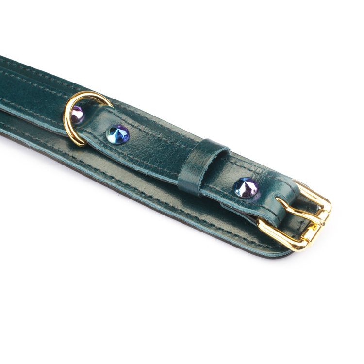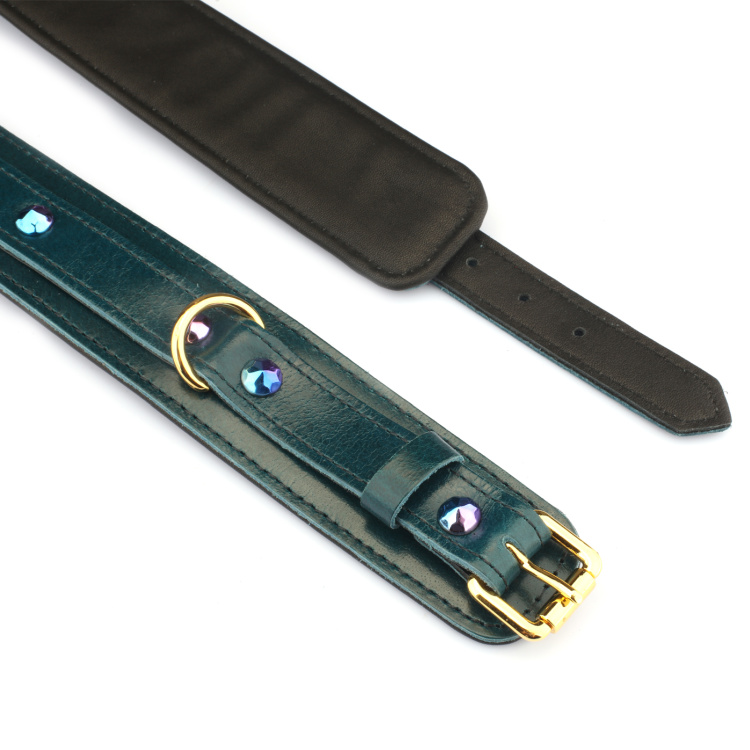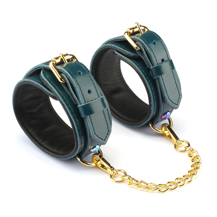 Liebe Seele Luksus Blå – Læder Ankelmanchetter er skabt til dem, der ønsker bondage med både styrke og stil. Serien er udført i premium olievokslæder i en forførende dyb blå farve, der kombineres med glitrende blålilla nitter og detaljer i varmt guldmetal. Resultatet er et luksuriøst og dragende look, der giver bondagelegen en helt ny dimension.