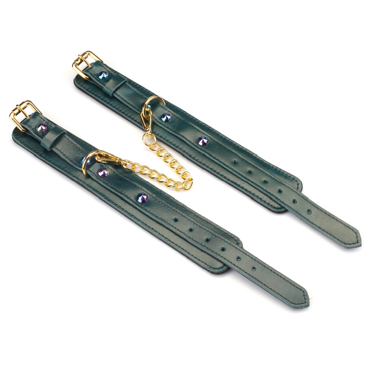 Manchetterne er designet med solide spænder, så de kan justeres præcist og sidde behageligt under både korte og længere sessioner. Brug dem alene for elegant kontrol eller kombiner med andre produkter fra Luksus Blå-serien – for eksempel håndledsmanchetter eller et matchende halsbånd.