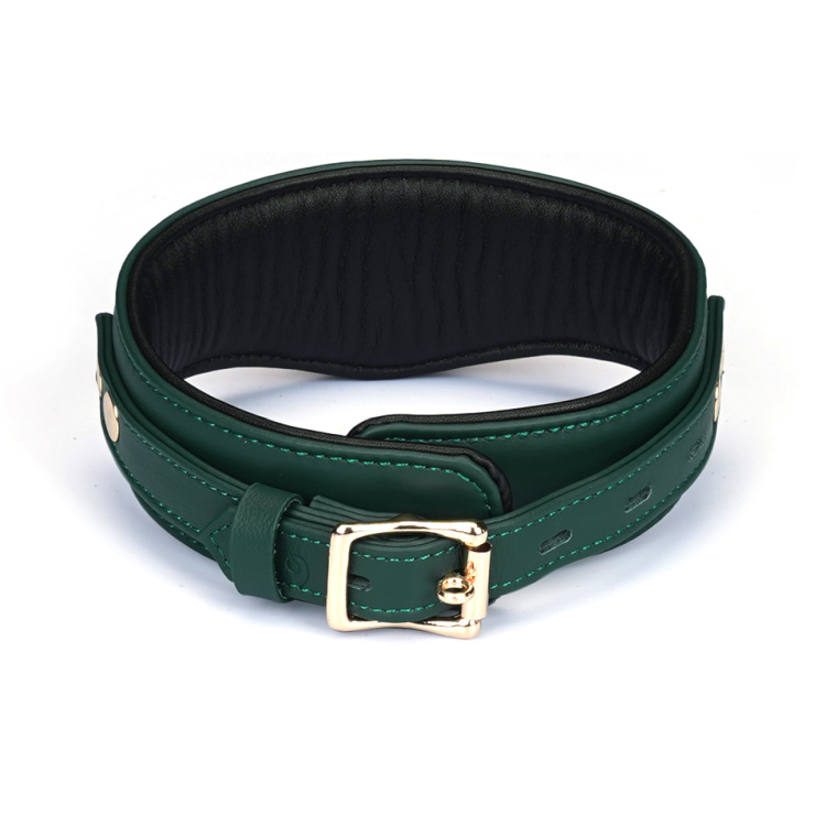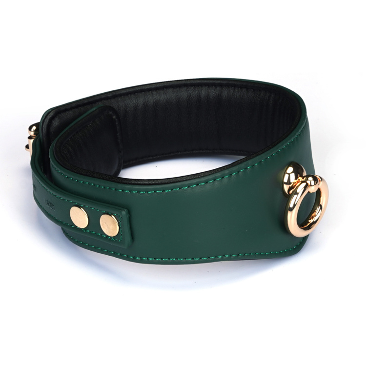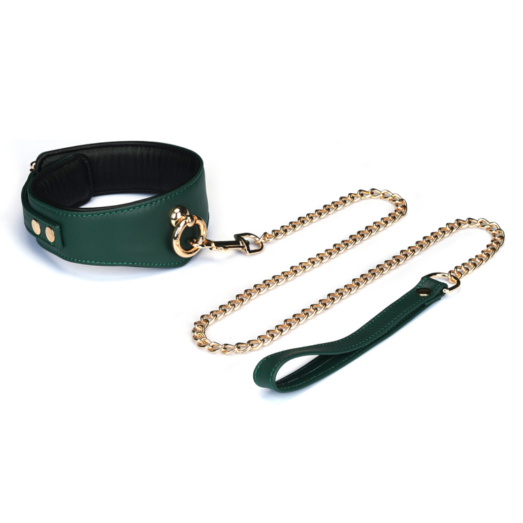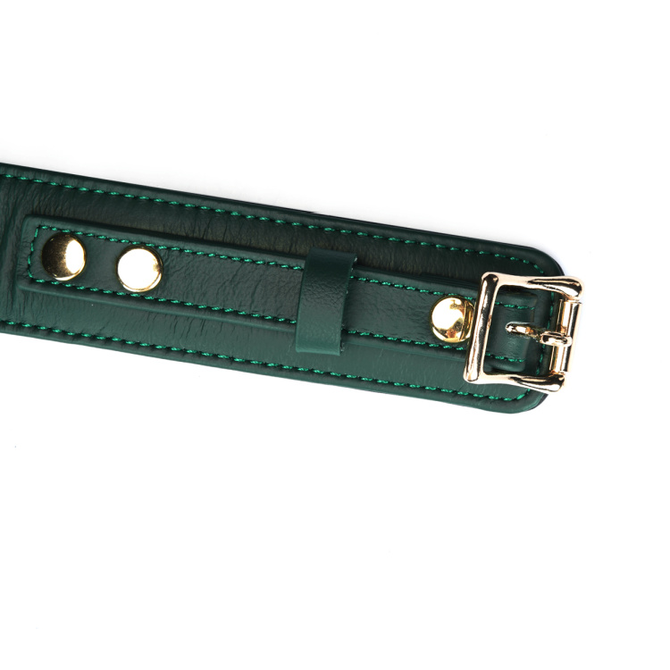Den dybe grønne farve kombineret med de smukke guldfarvede detaljer giver et overdådigt og sofistikeret udtryk, der gør selv bondage-udstyr til et æstetisk statement.