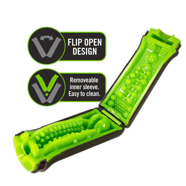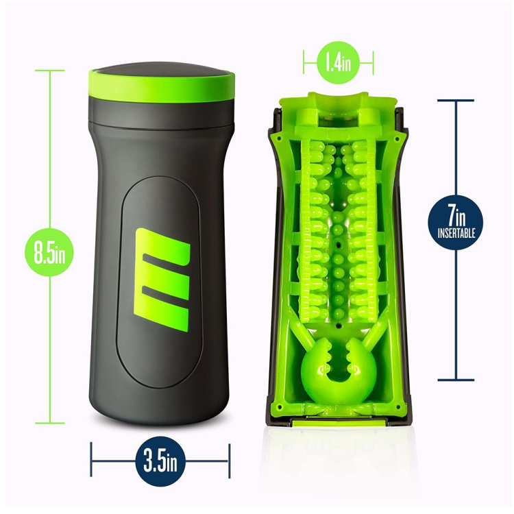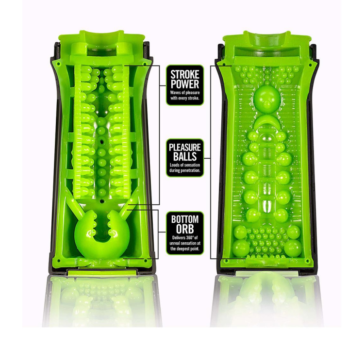 Begge grønne sider kan aftages helt fra masturbatoren. Begge lufttørres inden de sættes på plads igen i hysteret.