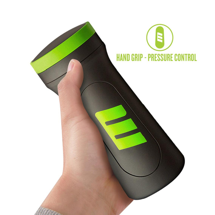 Strokerens håndtag har indbygget trykregulering, så du selv kan bestemme, hvor stramt og intenst din stimulation skal være. Det indvendige sleeve består af flere teksturerede kamre, der giver varierende stimulering under brug – fra tæt fasthed til mere glidende fornemmelser.