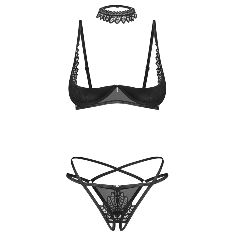 Et sæt, der virkelig kan noget, når du vil kombinere elegance med en sensuel kant. Donarella-sættet fra Obsessive består af en smuk bøjle-BH og en bundløs g-streng – begge dele med fine detaljer, bløde materialer og et frækt twist.