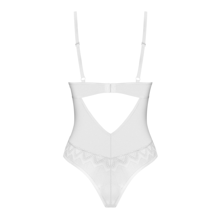 Alissium Body fra Obsessive er en elegant, gennemsigtig body i hvid blonde og tyl, der både føles fantastisk på kroppen og ser helt uimodståelig ud. De bløde materialer smyger sig om dine kurver, og de fine detaljer tilføjer et ekstra strejf af luksus.