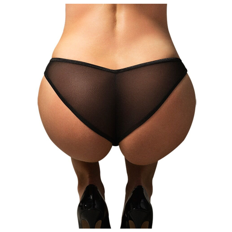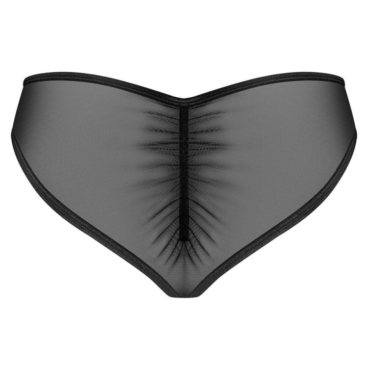 Donarella trusserne fra Obsessive forener forførende design med komfort i høj kvalitet. Det transparente sorte materiale kombineret med delikate broderede detaljer og legende flæser bagpå skaber et feminint og elegant udtryk, der både tiltrækker og forfører.