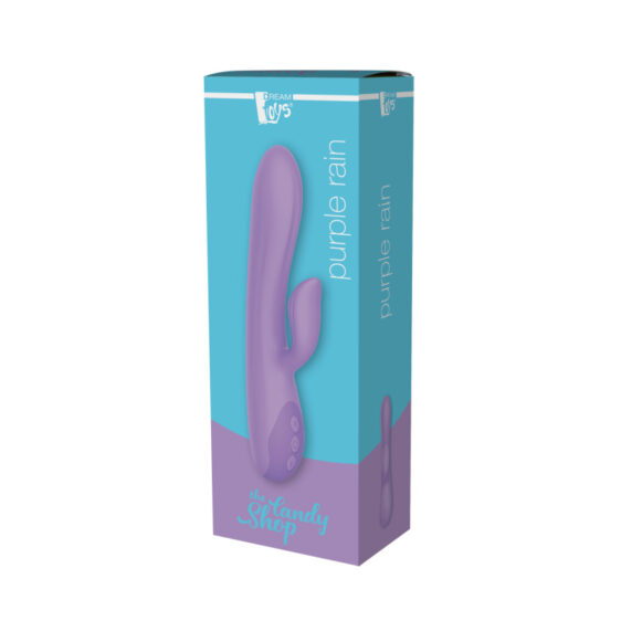 Skøn rabbitvibrator i lækker silikone. Det helt særlige ved Purple Rain vibratoren er, at skaftet er fleksibelt. Det giver en langt bedre stimulering, da det vil føles langt mere behageligt, end et helt stift skaft. Ved at den er fleksibel, giver det en mere behagelig indføring, da den bedre kan forme sig efter dine indvendige kurver.