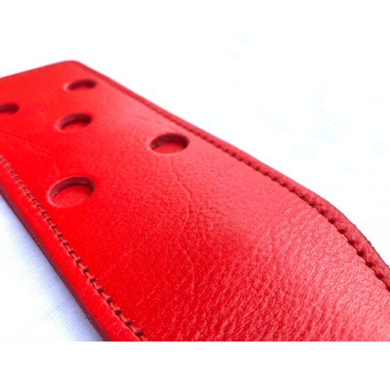Super flot rød læderpaddle, der er herlig at arbejde med. Med sin fulde længde af 38 cm. er det nemt at give hurtige smæk. Selve fladen i paddlen er fleksibel, så den vil også være ganske glimrende til at slå på kryds og tværs af ballerne i højt tempo.