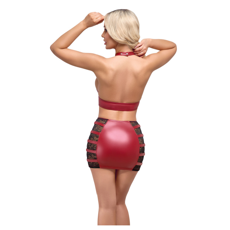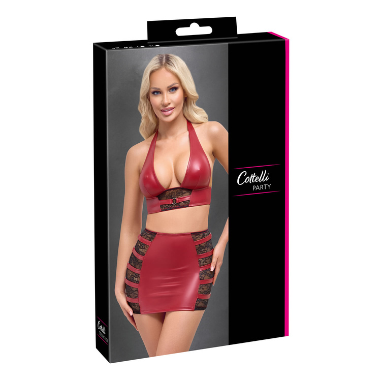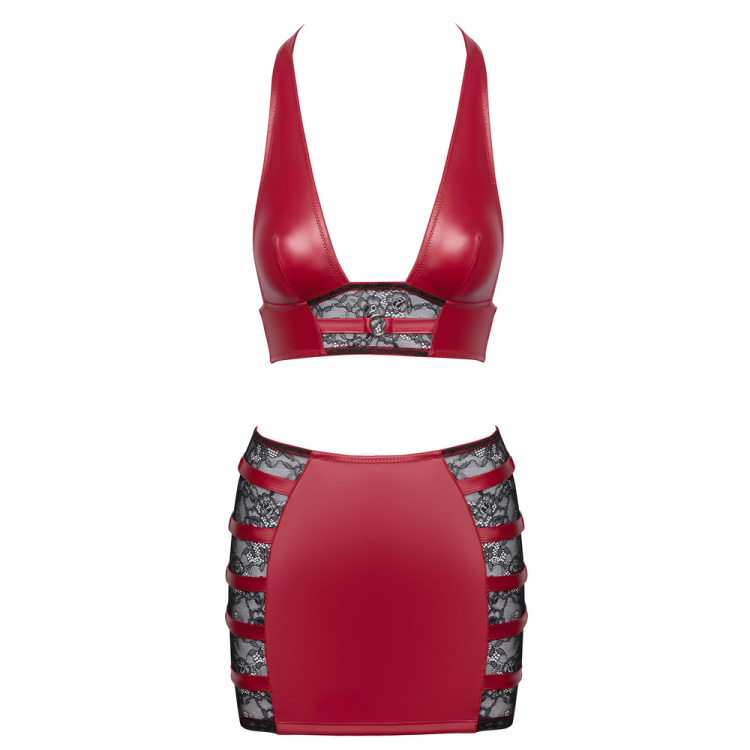 Et sæt der både føles og ser fantastisk ud! Denne lækre kombination af crop top og stram nederdel i skinnende rød wetlook fremhæver dine former og tilføjer et sexet og stilfuldt touch – perfekt til frække stunder eller en aften, hvor du vil føle dig ekstra selvsikker.