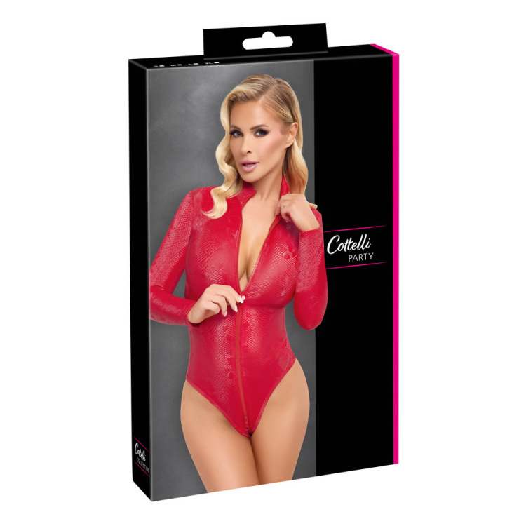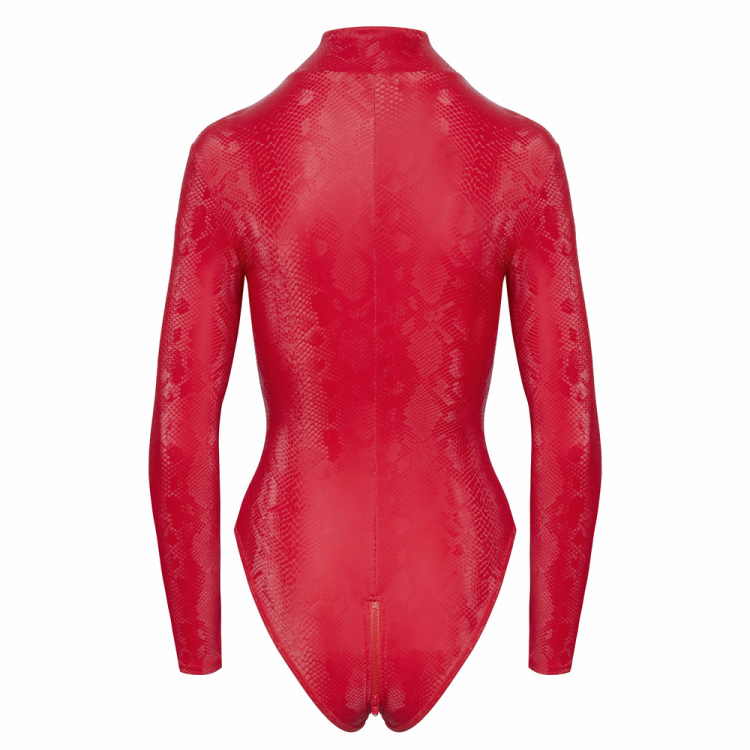 Gør et stærkt indtryk med denne langærmede wetlook-body i et trendy rødt slangeskindsdesign. Det tætsiddende snit og den iøjnefaldende farve gør, at du nemt kan bære den som den er – eller sammensætte den med andre ting, for at skabe et lækkert outfit.